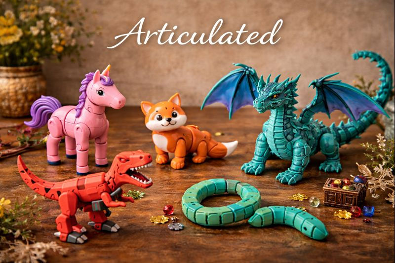 Our *Articulated* category features finely crafted 3D-printed toys designed with flexible joints and dynamic structures that allow smooth movement and endless posing possibilities. Each piece is carefully engineered to balance durability with articulation, making them both fun to play with and satisfying to display.